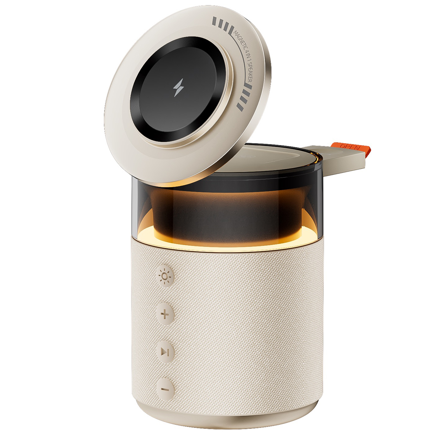 3 in 1 Magnetic foldable wireless charger with bluetooth speaker and LED light to charge phone /earbuds/watch