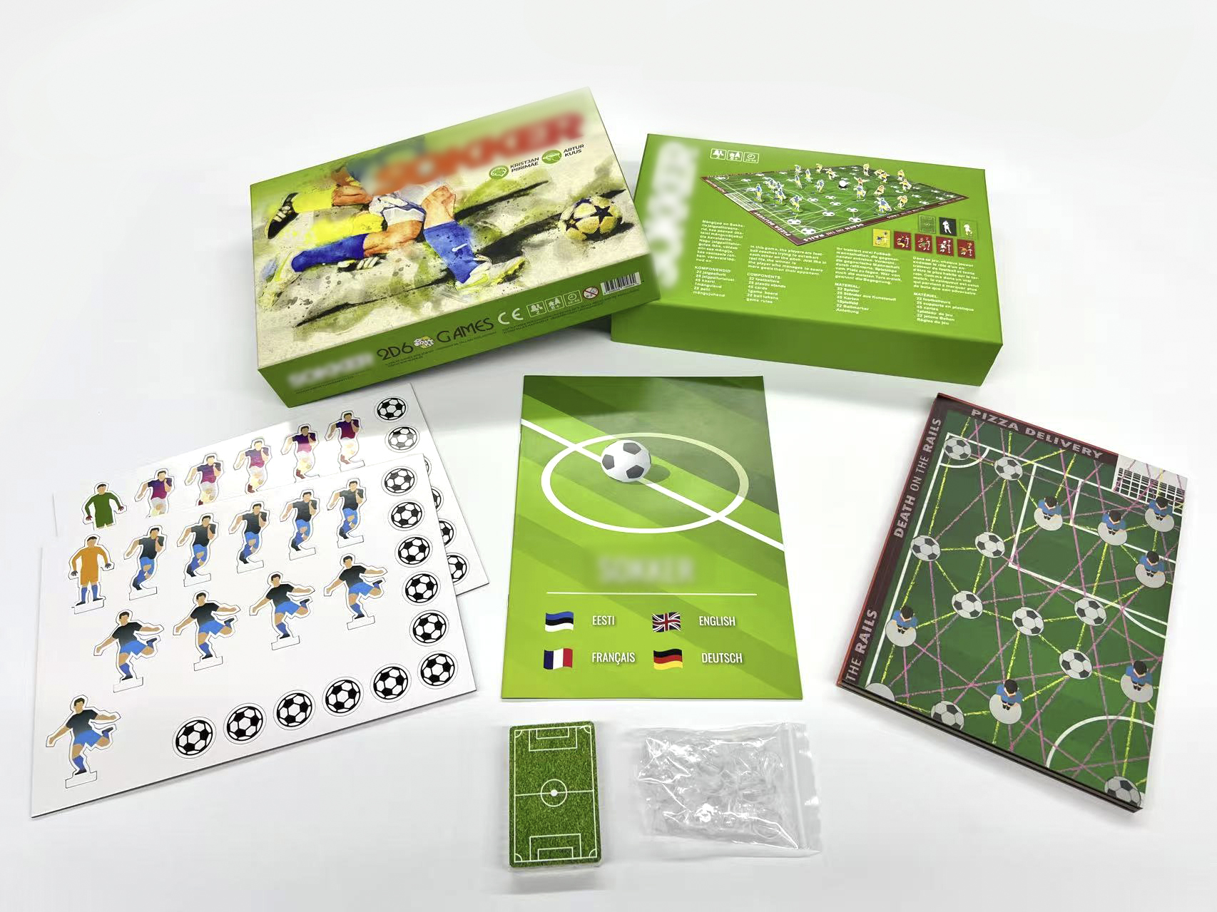 This professional rigid box packaging set is specially designed for soccer/football themed board games. It provides high-strength protection, organized storage, and premium gift-style packaging for the full game set including game board, playing cards, dice, tokens, player pieces, rule book, and other game accessories.