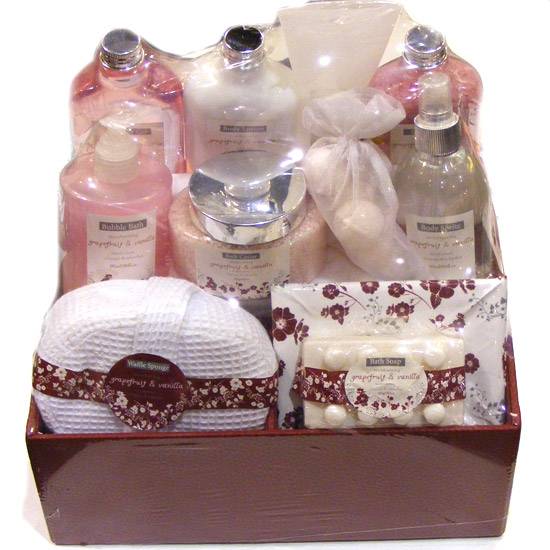 This is a bathroom set with a box. It includes a body lotion, a body scrub, a bubble bath, a shower gel and a bath salt. It gives decent scent after shower. It gives decent scent of rose, grapefruit and vanilla after shower.