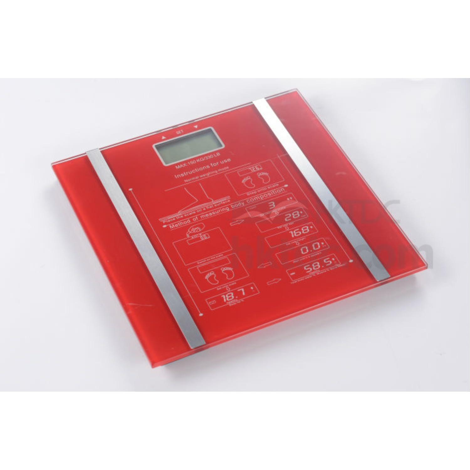 ■Body fat and water scale ■Capacity :3kg-150kg(330lb/23.6st) ■Graduation:0.1kg / 0.2lb ■ High precision strain gauge technology ■With tempered safety glass platform ■Button function ■Low battery and over load indication ■Window size:69x34mm ■Dimension of the scale: 300 x 300x 20mm ■Body fat ,body water,bone muscle,daily caloric ■10 measured value memories for 10 users ■Power :1*3v lithium cell CR2032