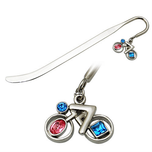 Bicyclist pendant with blue & pink stones.