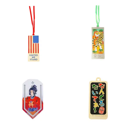 This is a bookmark with an attractive appearance. It features a golden background with colorful accents. Mark your page with this unique bookmark.