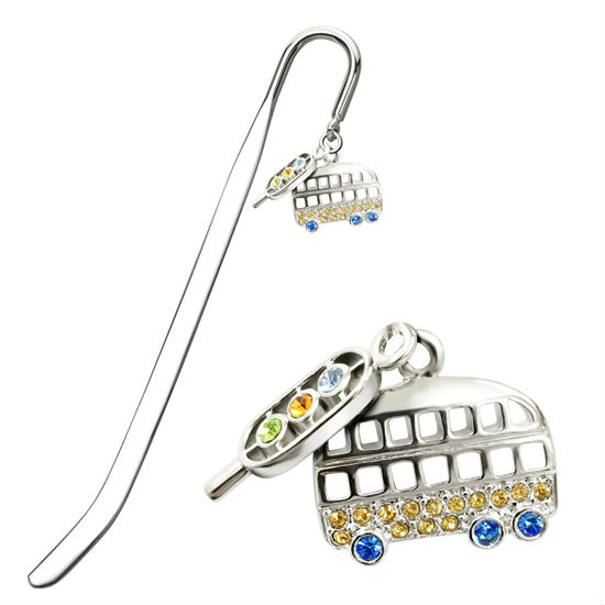 Bus pendants w/ yellow, orange, green, blue & light blue stones