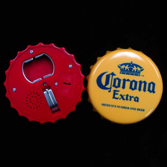 The bottle opener flaunts quality construction in vibrant colors. It comes with a bottle-cap-shaped design for added fun. This bottle opener is suitable for households and bars.
