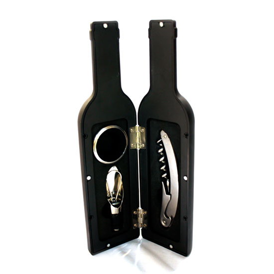 This bottle set comes with a corkscrew, wine pourer and wine ring. The top-quality metal material is durable and offers an extra-long serving time. The bottle-shaped box allows you to store the items inside neatly.