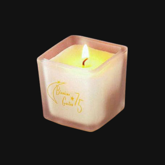 Create a romantic mood with this beautiful candle holder and scented candle. Designed with frosted glass, the holder allows the candle to deliver soft glow during a candlelight dinner. Appealing and useful, the candle holder is also great as wedding or party supply.