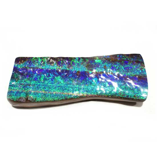 This stunning boulder opal stone showcases an intense green color with peacock blue highlights. The enchanting, rich boulder opal flashes to its maximum brilliance under the light. The beautiful boulder opal is perfect raw material for assorted jewelry projects.