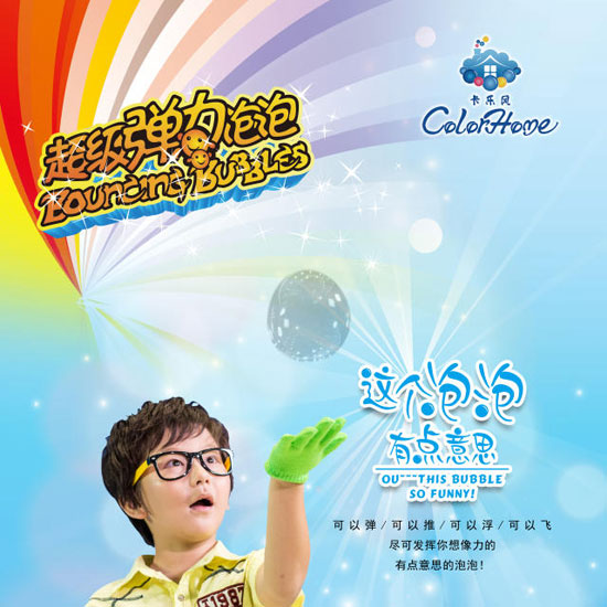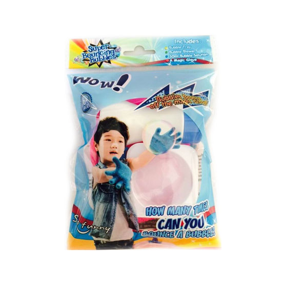 This bouncing bubble toy comes with a PVC bubble tray, a pair of magic gloves, a bottle of bubble solution and a small bubble blower. It is professionally made for added fun. This interesting toy is a great choice for your kids to play with.