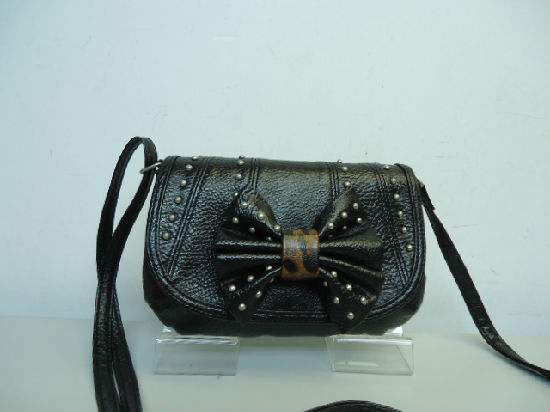 Bow decor leopard PVC with pebble PVC shoulder bag.