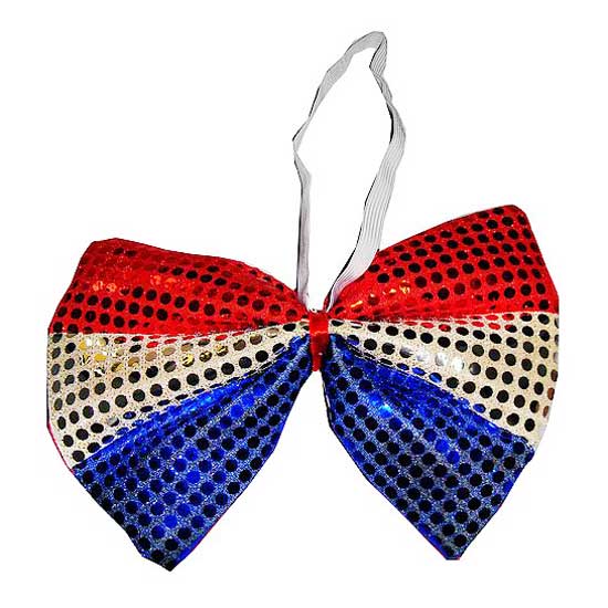 This displayed bow tie features a ready-tied design. The combination of red, white and blue features a stylish accent. This outlined bow tie adds a playful finish to your look.