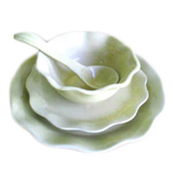 Showcased is a bowl and spoon set that is made of high-quality ceramic material. This excellent set features a unified wave-edge style. This simply is an excellent addition to your dining table.