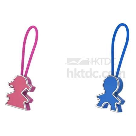 Boy & Girl Shape Metal Keychain with Plastic Strap
