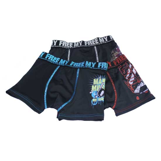 This set of boys' underwear includes two boxers in different colors. The fashionable design is highlighted by the cool-and-hip pattern printed on the side of each pair of boxers. Made of quality material, this boys' boxers set is comfortable to wear.