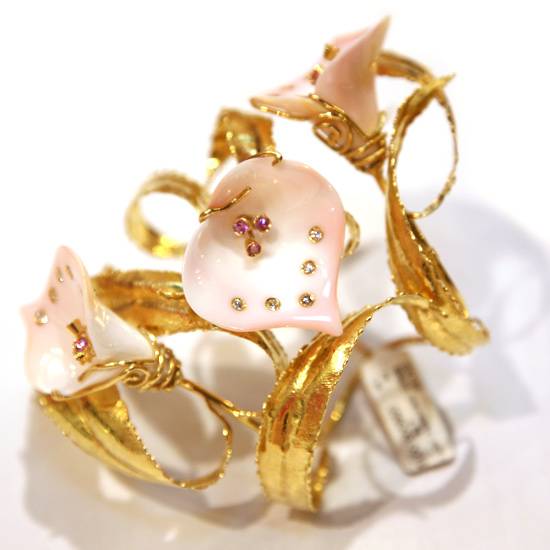 Features here is a bracelet in contemporary design. It is made with 18k gold, which has high durability. The bracelet has diamond as decoration. With this bracelet, it would increase your sense of elegance.