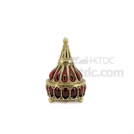 Shown here is a quality brass box in a stylish two-tone design in gold and red color. Touting an antique style with taste, the hand-blown glass embellishments make a strong appearance throughout the solid brass box and the dome-shape lid. This delicate box is versatile for keeping candies, jewelry, or other items.