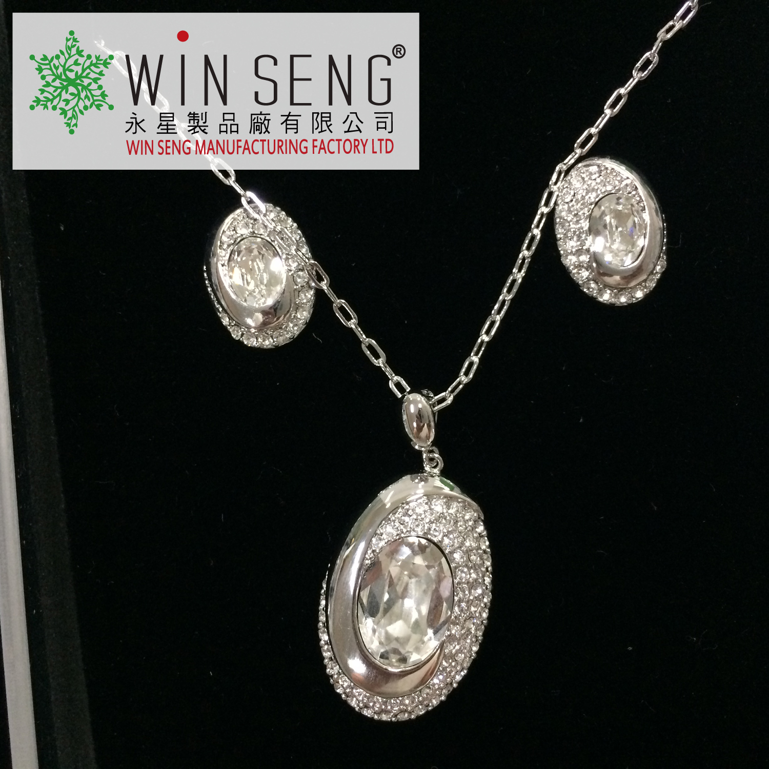 • Item Name: brass gravel oval with clear crystal necklace with earrings
