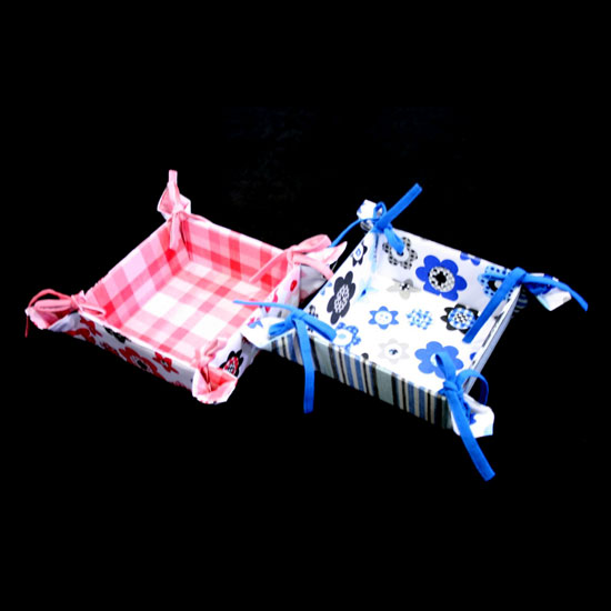This bread basket features a delicate square-shaped holder made with cotton. Adorned with colorful patterns and ribbons at the four angles, this fancy basket stimulates your appetite every morning. This interesting bread basket is a fun addition to home and restaurants.