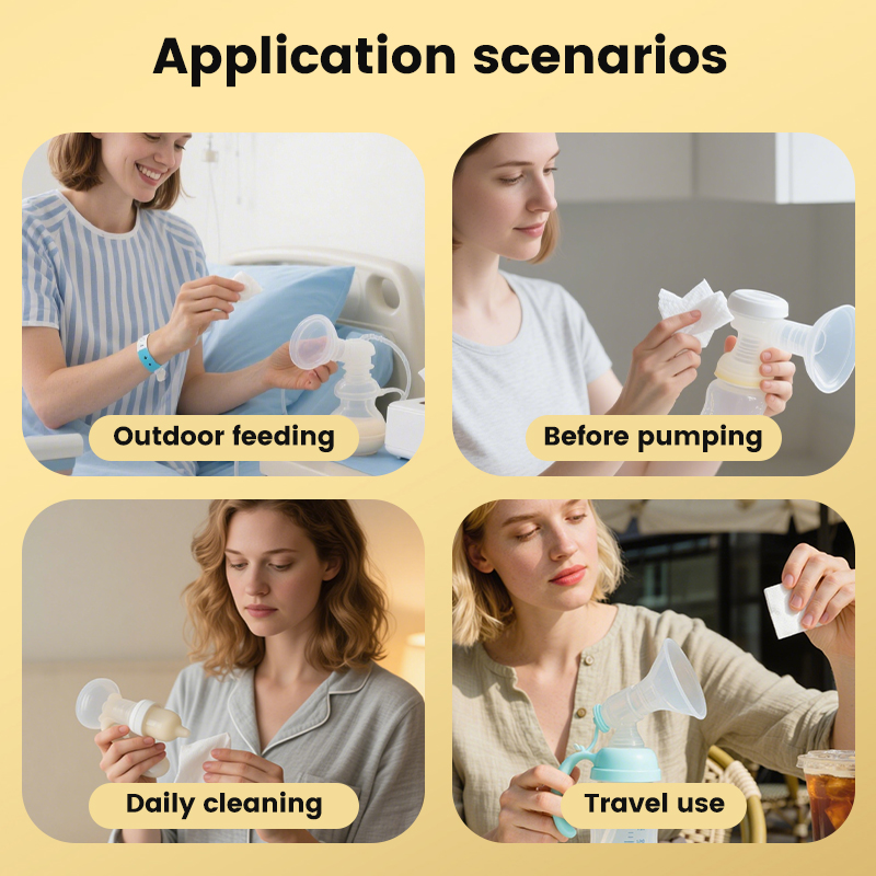 | Designed for the modern, active mother, our Breast Pump Wipes provide a quick and effective cleaning solution without the need for soap and water. These wipes are specifically formulated to remove breast milk residue while being gentle on both your skin and your pumping equipment. |