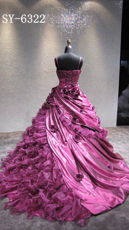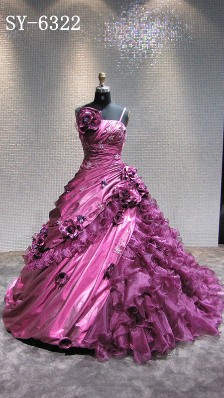 two tone satin, pleated organdy with beads and flower