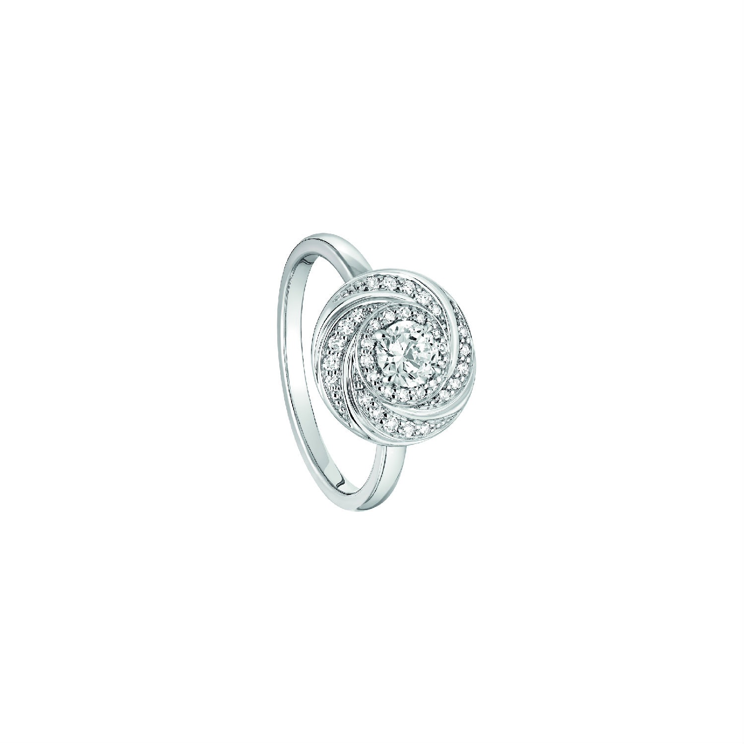 White gold ring, 1 diamond 0,36ct and 34 diamonds 0,16ct