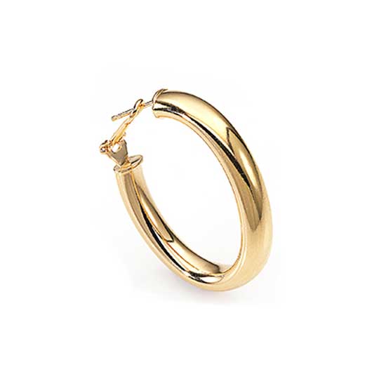 This is a hoop earring in quality bronze. It is meticulously polished, showcasing a brilliant shine. This displayed bronze earring complements different outfits nicely.