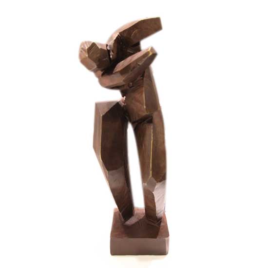 This sculpture showcases simple lines and a vivid shape. It uses plain bronze material to create an artwork with primitive beauty. The delicate sculpture makes an excellent decorative item for your space.