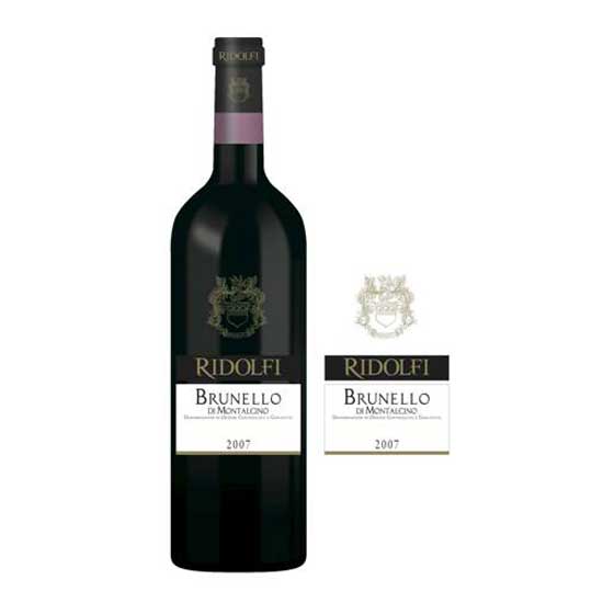 This Brunello di Montalcino DOCG 2007 from RIDOLFI is a live and brilliant garnet colored red wine. It features intense and persistent aromas and is rich in fruity hints of ripe black cherry and wild berry that turn to spicy notes and liquorice. The taste is harmonious and elegant, yet it has strength and character, with think, well-balanced tannins that are never too aggressive. This distinctive red wine goes great with structured dishes of red meats, feather and furred games and it is also enjoyable as a wine for meditation.