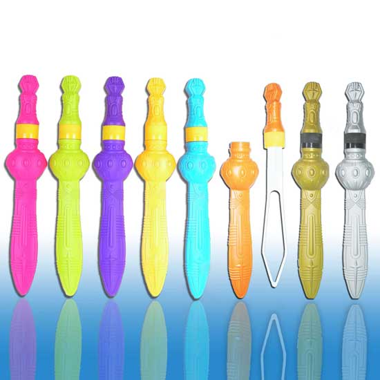 Be a bubble warrior with the featured bubble swords. These swords do not hurt but they create a world of fantasy by producing beautiful glossy transparent bubbles. They are suitable for use in outdoor areas.