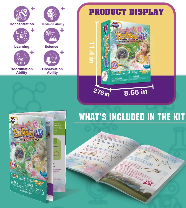 Home STEM Kits for Kids: Explore home bubble science kits designed for your kids, so they can play and learn about the science around them, let kids play with bubbles, create square bubbles, and 3D bubbles, use bubbles Bubble painting, and use your own tools to make giant bubbles, Bubble Science Kit not only entertains kids, but also develops and improves hand-eye coordination, logical thinking, observation skills, understanding of physical science knowledge, exploring tense Mysteries, and grow into a brilliant physical scientist.