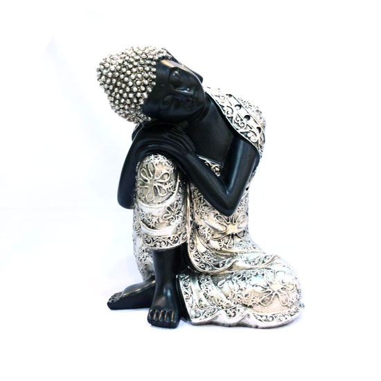 This Buddha statue is sure to delight those devout Buddhists. The Buddha sits on the floor peacefully with hands and head resting on the knee. Made of poly resin, this Buddha statue bestows high quality for long time display.