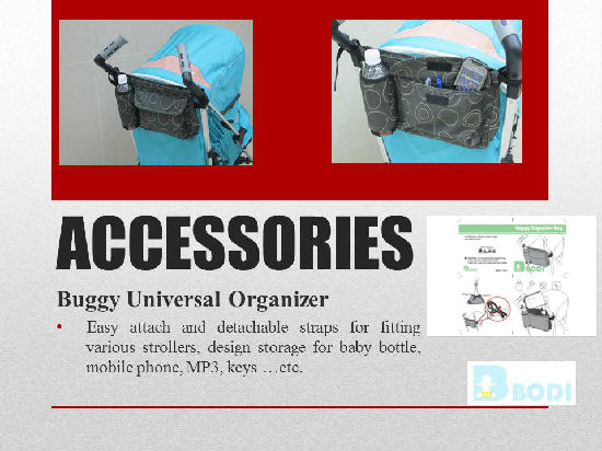 This buggy organizer is designed for use with the baby stroller. It comes with multiple compartments and provides easy access to the feeding bottle. This user-friendly organizer gives parents much convenience.