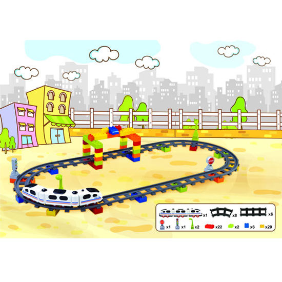 This building block train set allows players to build their own railway creatively. Accessories such as traffic lights and road signs can be added to the railway. A well-made three-compartment train delights any player instantly.