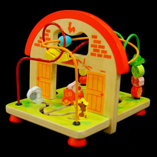 Shown here is a building toy with colorful and printed components made of wood. The toy features different colored wires and toy animals. It also offers kids great amusement with an interactive design.