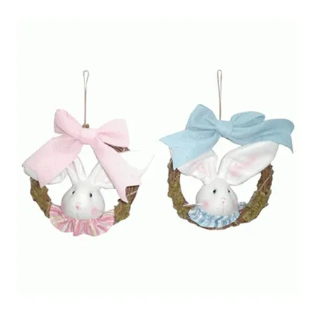These bunny wreaths feature adorable bunnies with rosy cheeks. They are trimmed with beautiful striped collars. In particular, the wreaths are accentuated with eye-catching butterfly bows.