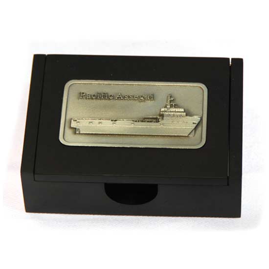The featured card holder comes in a traditional box shape. On top of the wooden cover is a metal plate carved with a delicate boat. Brilliant craftsmanship is shown to make this holder a presentable decoration on the desktop.