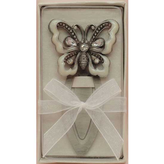 Highlighted is a metal bookmark featuring a butterfly decoration. The butterfly is crafted in a graceful shape, embellished with faceted shiny stones. A vintage accent is added on the metal structure to show an enhanced style.