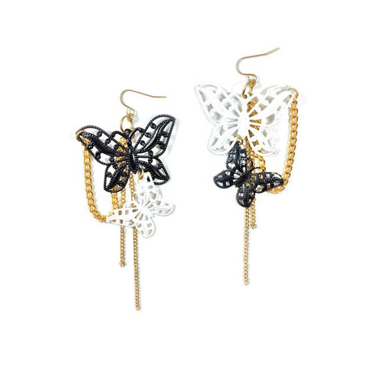 This pair of butterfly earrings is plated with a thick coating for added durability. The earrings feature a hollow design and metal details in a beige color for a nice contrasting effect. This pair of drape earrings goes well with a cropped, sleeveless T-shirt and a skater dress for a sweet summer look.