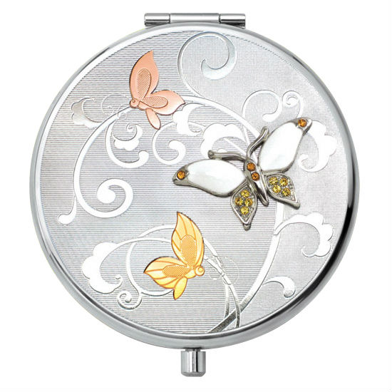 Round shape. Etching pattern with color and butterfly embossment with color stones.