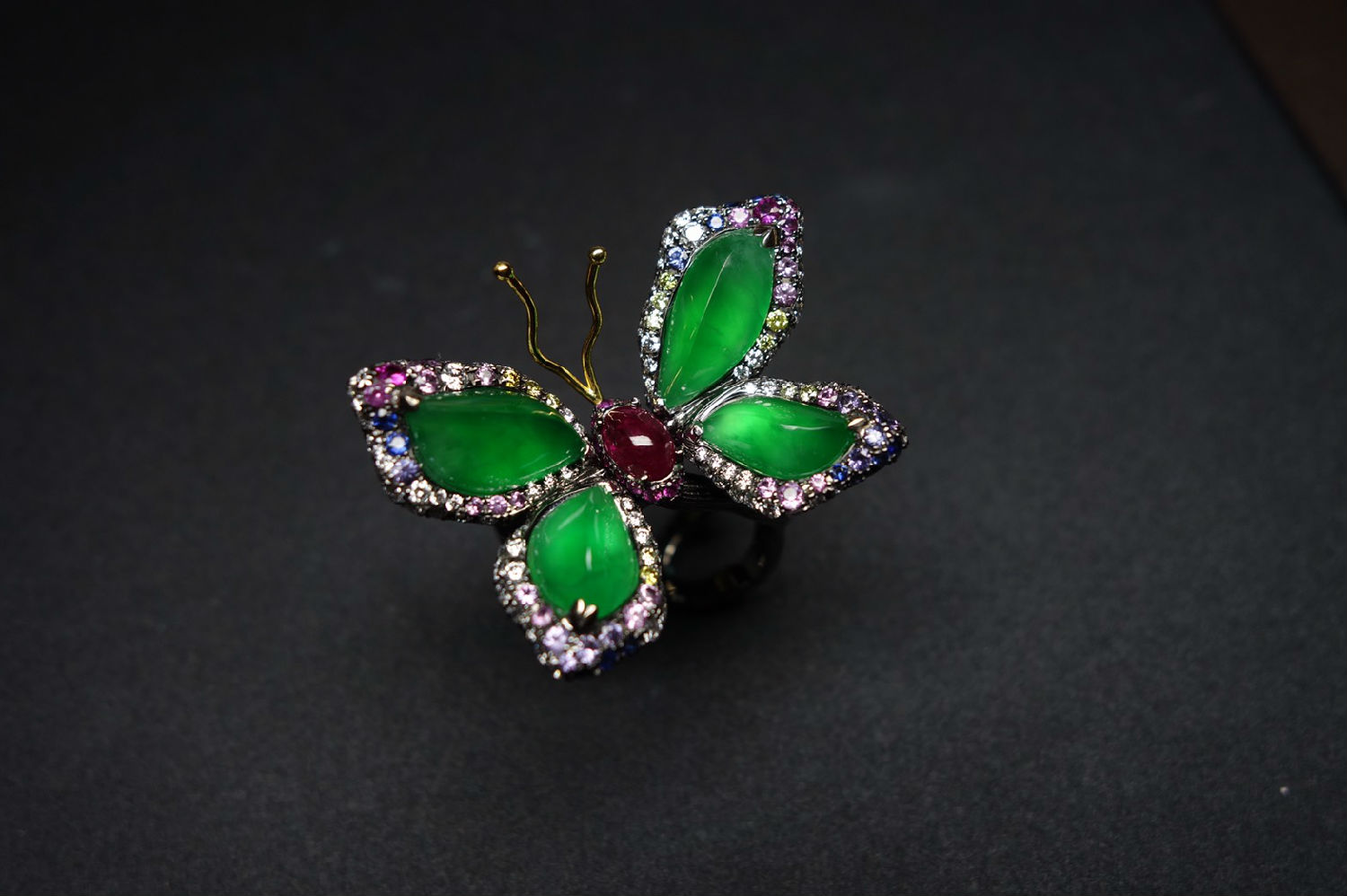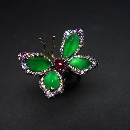 The material of butterfly ring is emerald that also can be the part of earring.