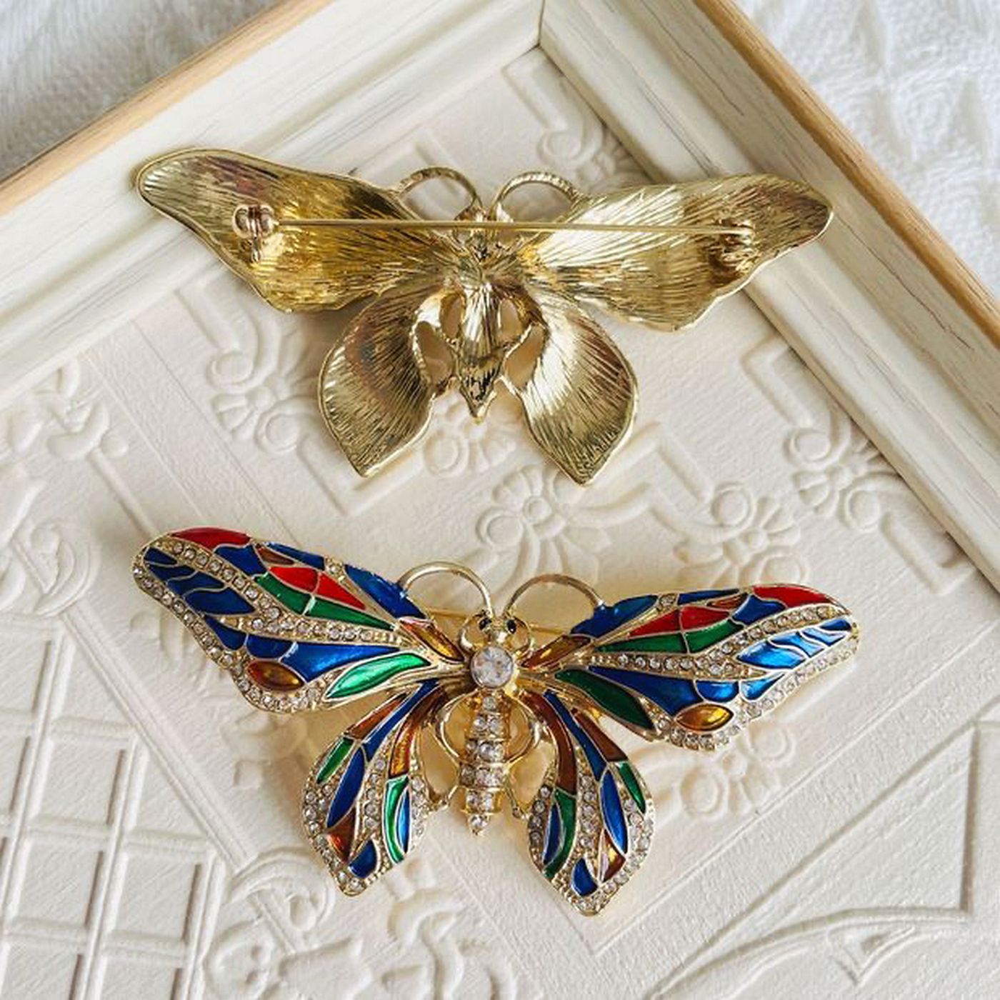 As shown is a high-fashion butterfly style crystals golden plated alloy parts brooch.