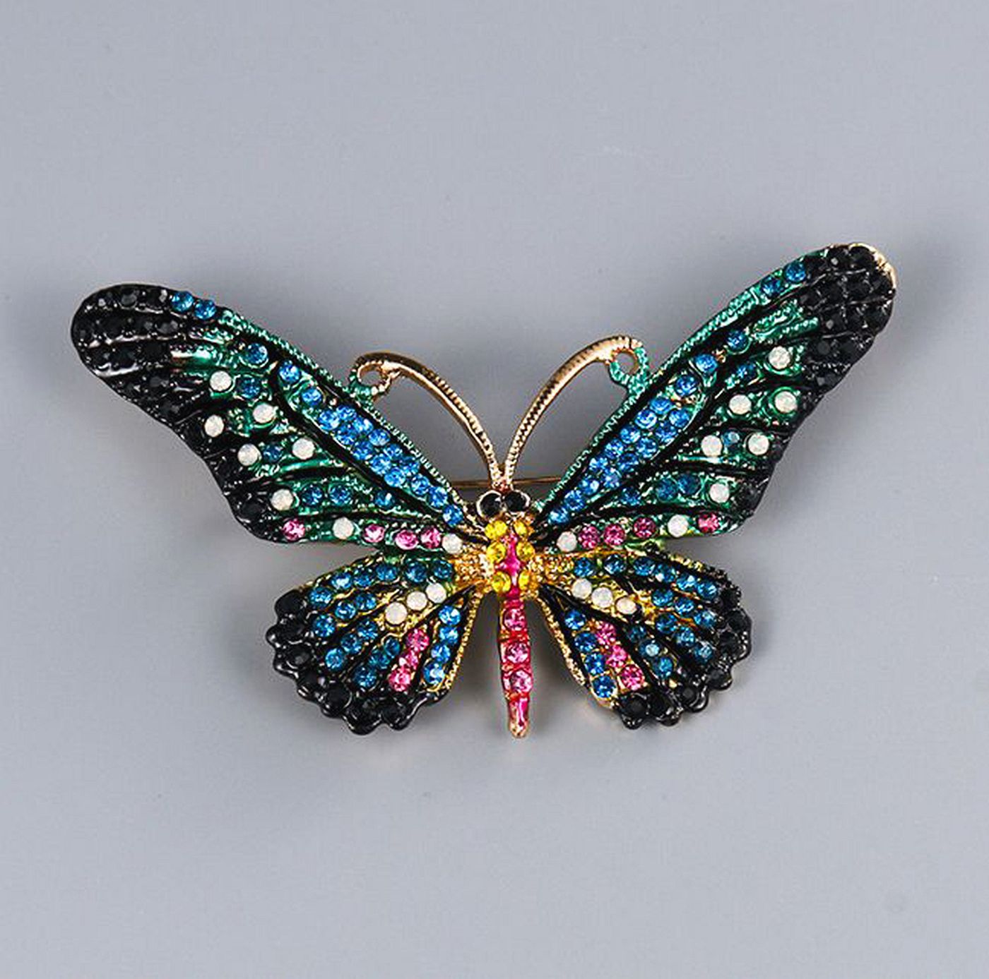 As shown is a high-fashion butterfly style crystals golden plated alloy parts brooch.