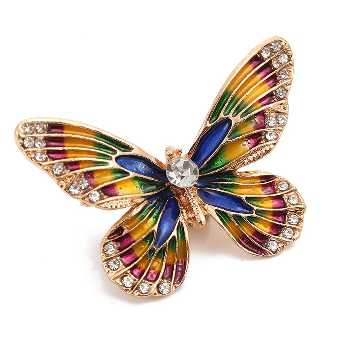 As shown is a high-fashion butterfly style crystals golden plated alloy parts brooch.