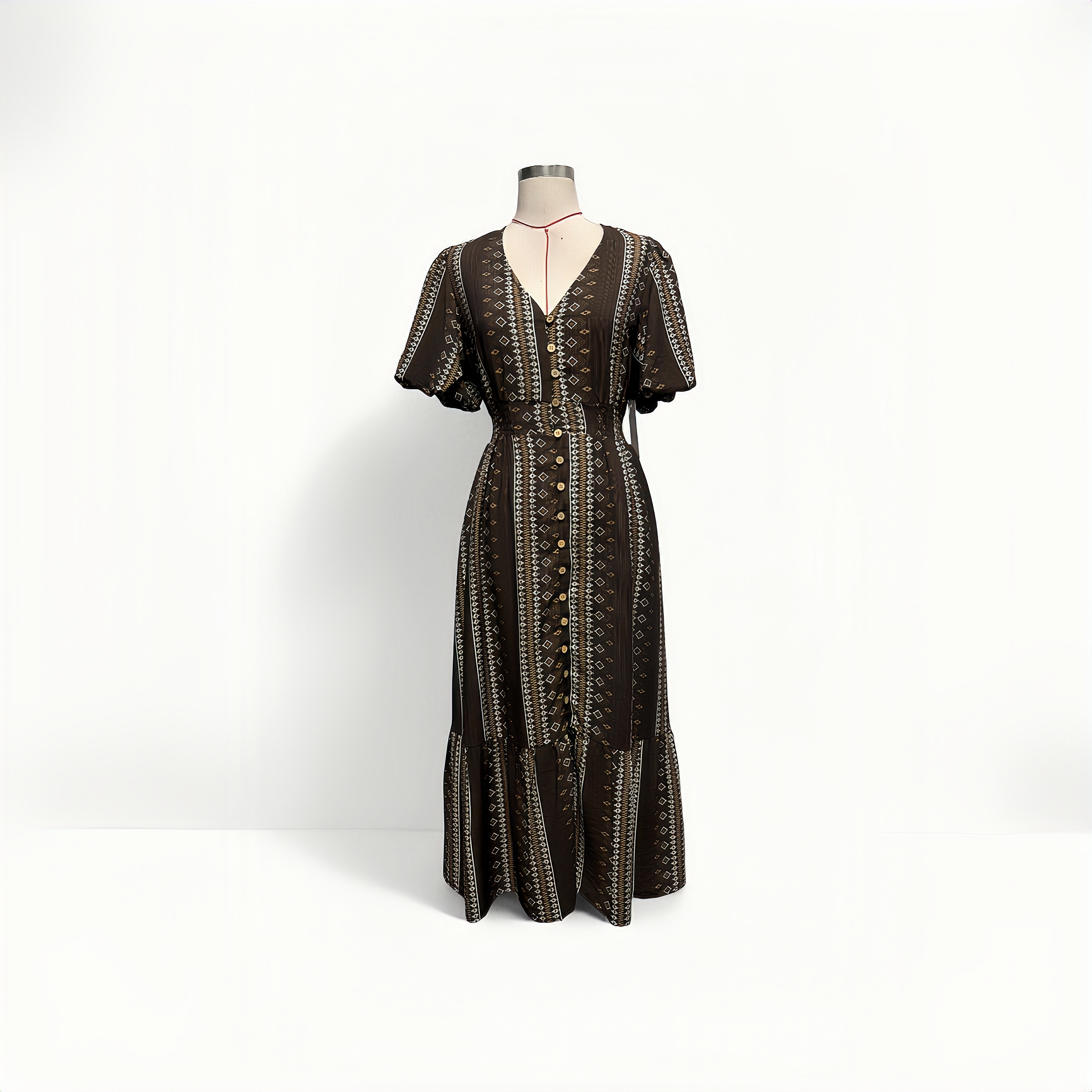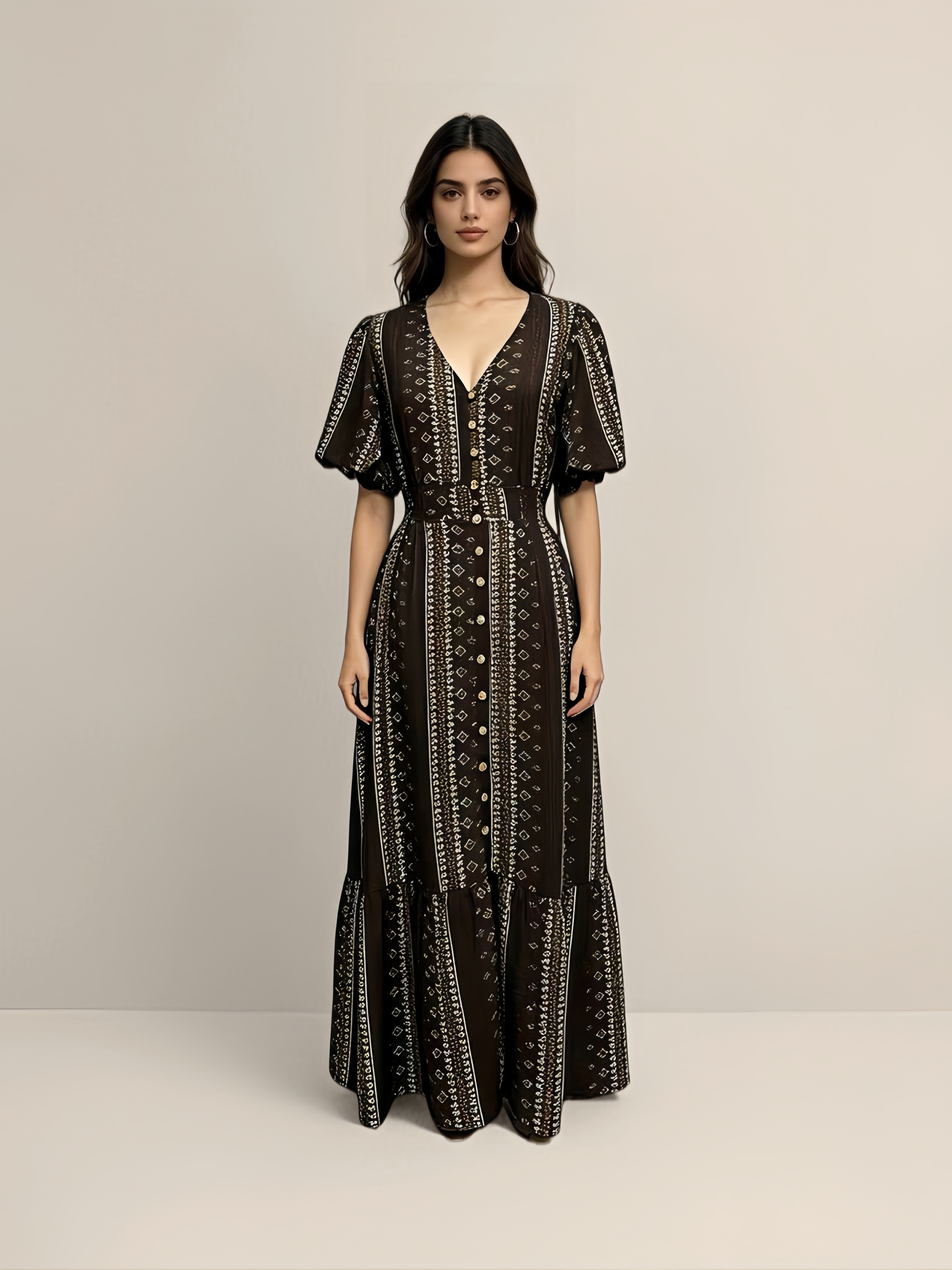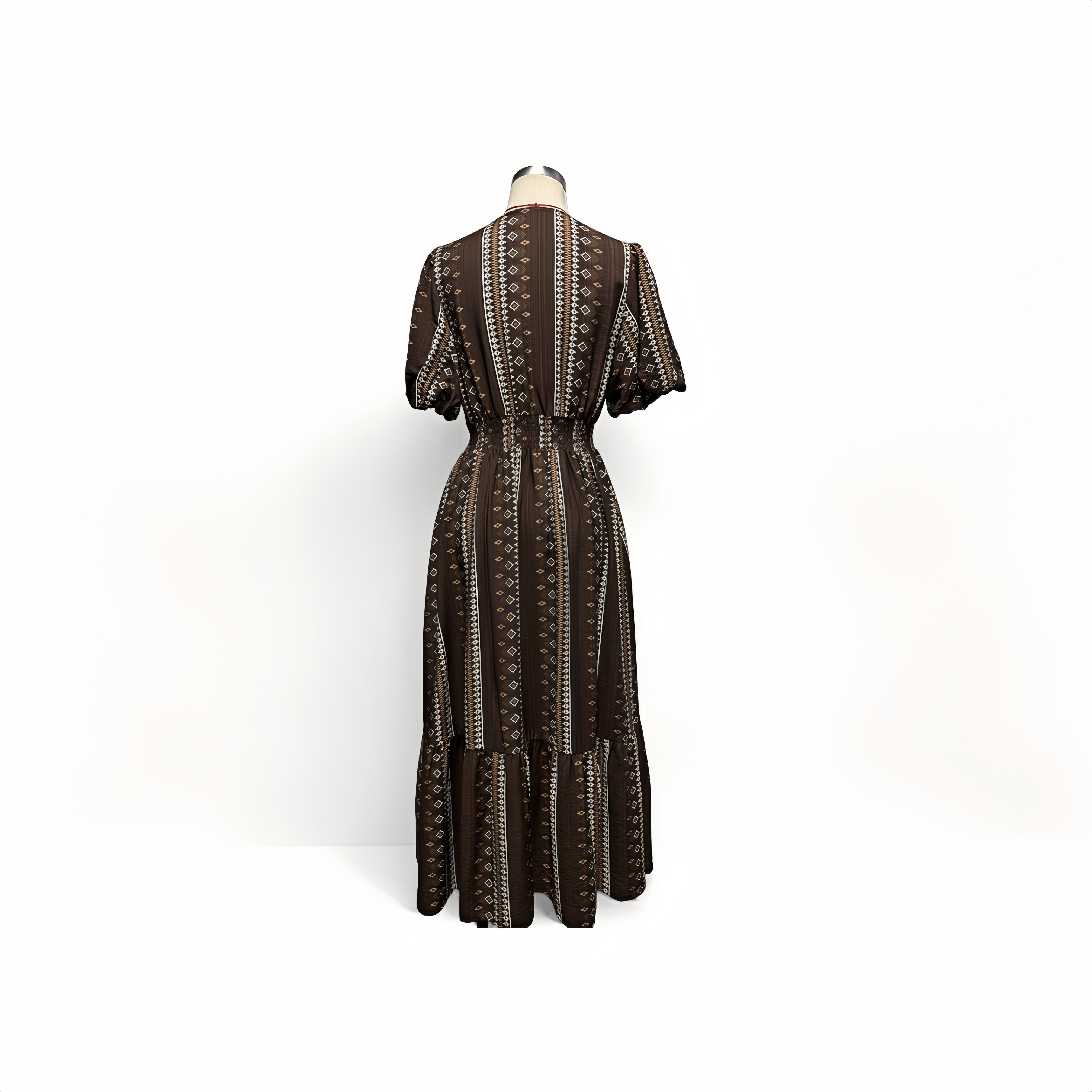 Puff Sleeved tribal long dress is a fashionable and comfortable choice that beautifully combines elegant style with cultural artistry, making it a must have addition to any wardrobe.