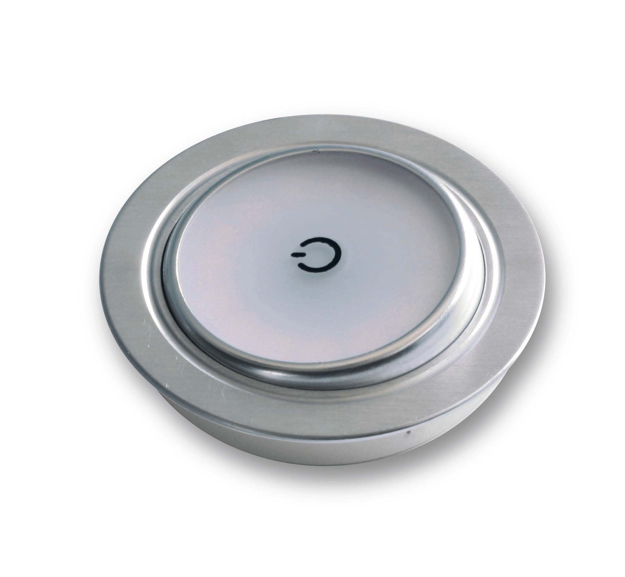 ALLAN LED RECESSED ALUMINUM SPOT LIGHT ,1.7W,15LEDS,SMD2835,12VDC,DIA65MM*15.5MM,CUTTING HOLE :59MM,SWIVEL,ALUMINUM POLISHED,20CM CABLE,4MM ROUND CONNECTORS,WITH TOUCH SWITCH,MILKY GLASS,WITHOUT LENS