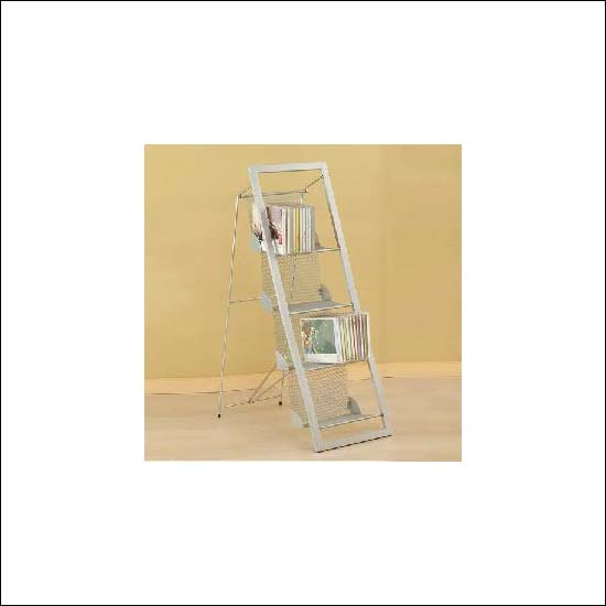 The CD rack is silver in color with powder coating.