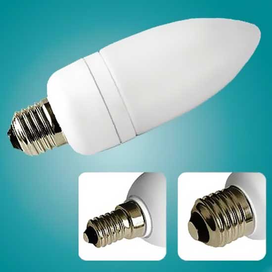 Pictured here is a CFL bulb with a torpedo shape. The bulb can operate with lower power consumption than traditional bulbs. Simply replace your old bulb with this green piece.