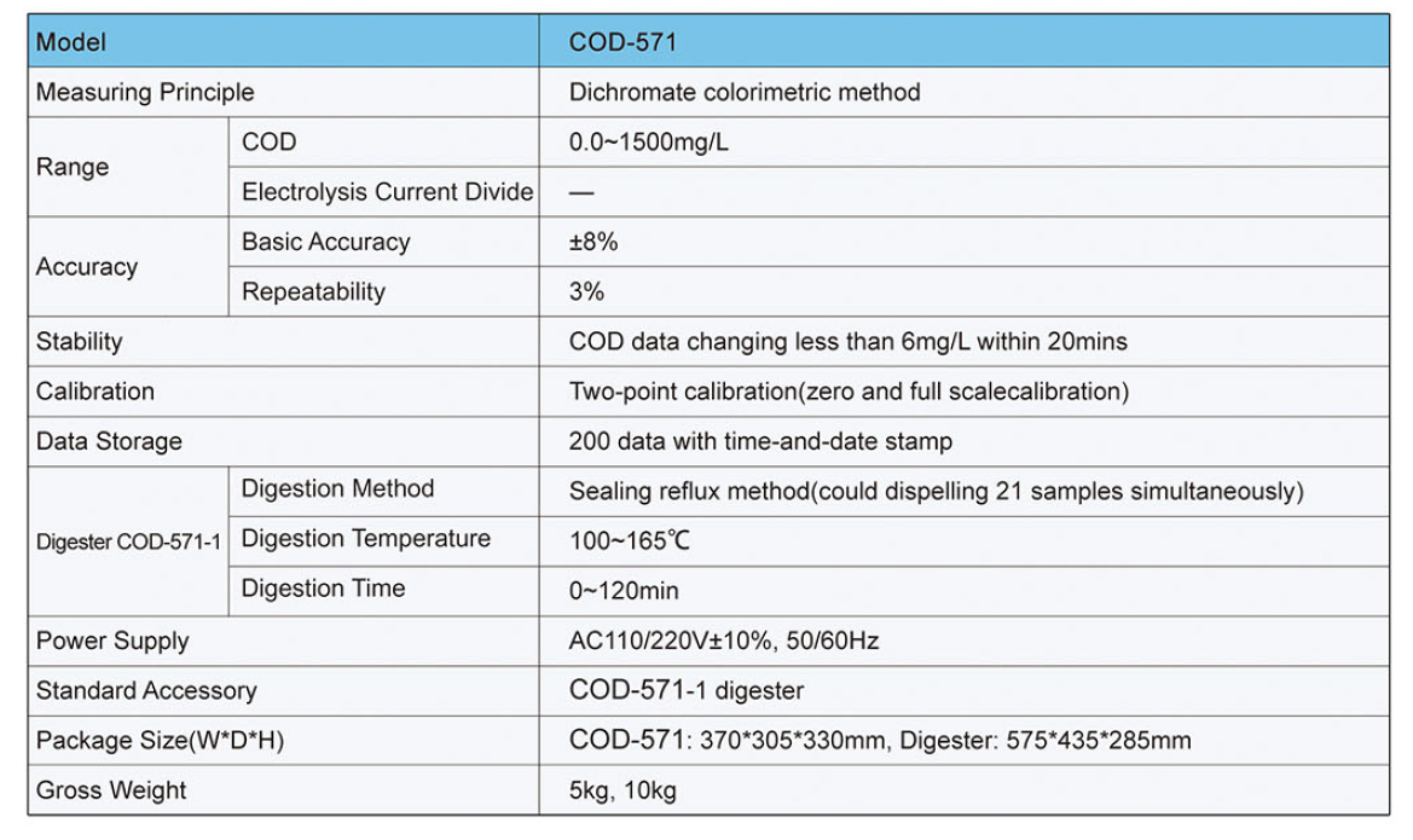 * Dichromate colorimetric method, LED light source,long service life