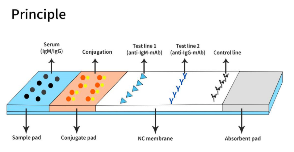 The colloidal gold immunoassay (CGIA) to detect COVID-19 utilizes the specific reaction between anti gen and antibody to detect the anti-SARS-CoV-2 antibody in patients' sample. The advantages of CGIA is fast and convenient, stable sample collection, high throughput, and the result can be interpreted by naked eye.