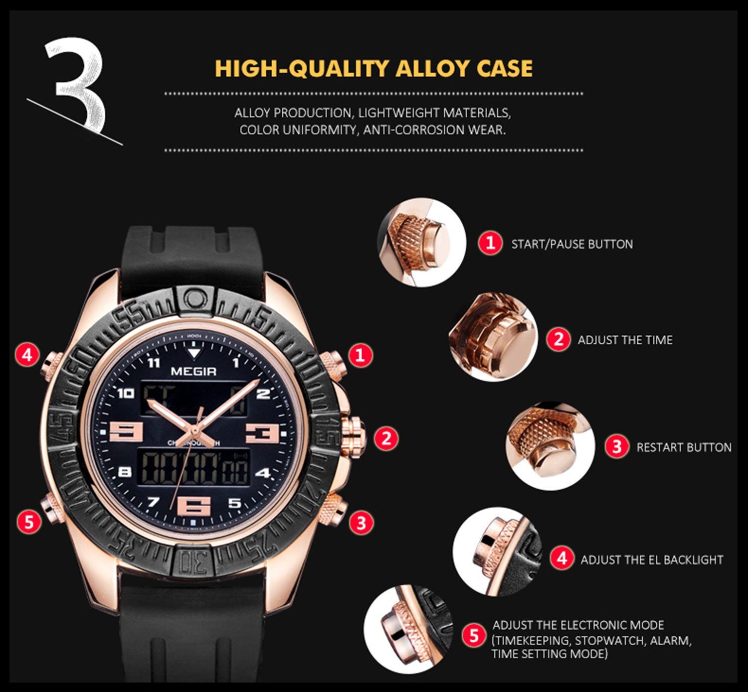 CW-665 Luminous Fashion Sport Analog Watch Relogio Masculino Digital Watches for Man Date Clock