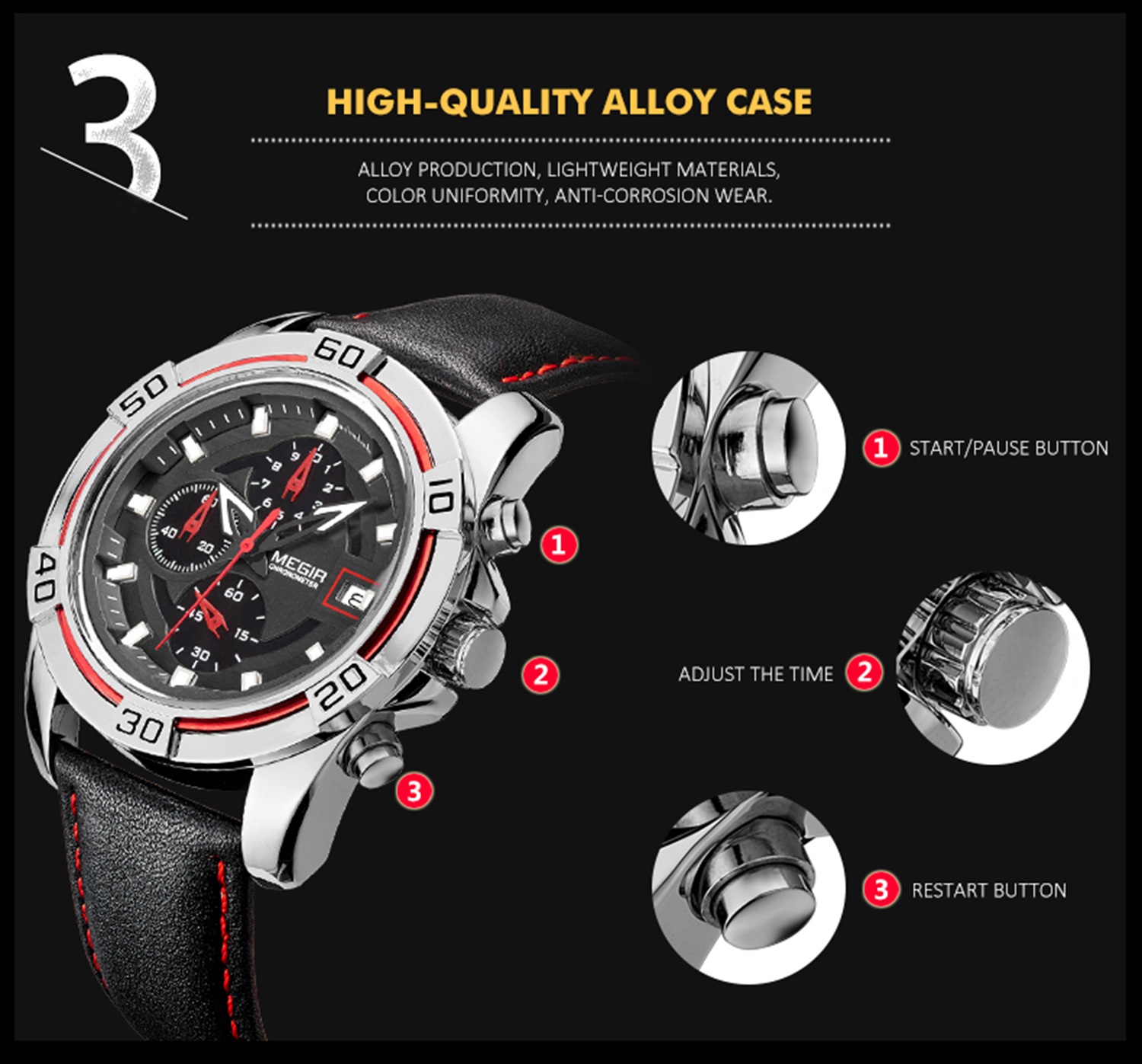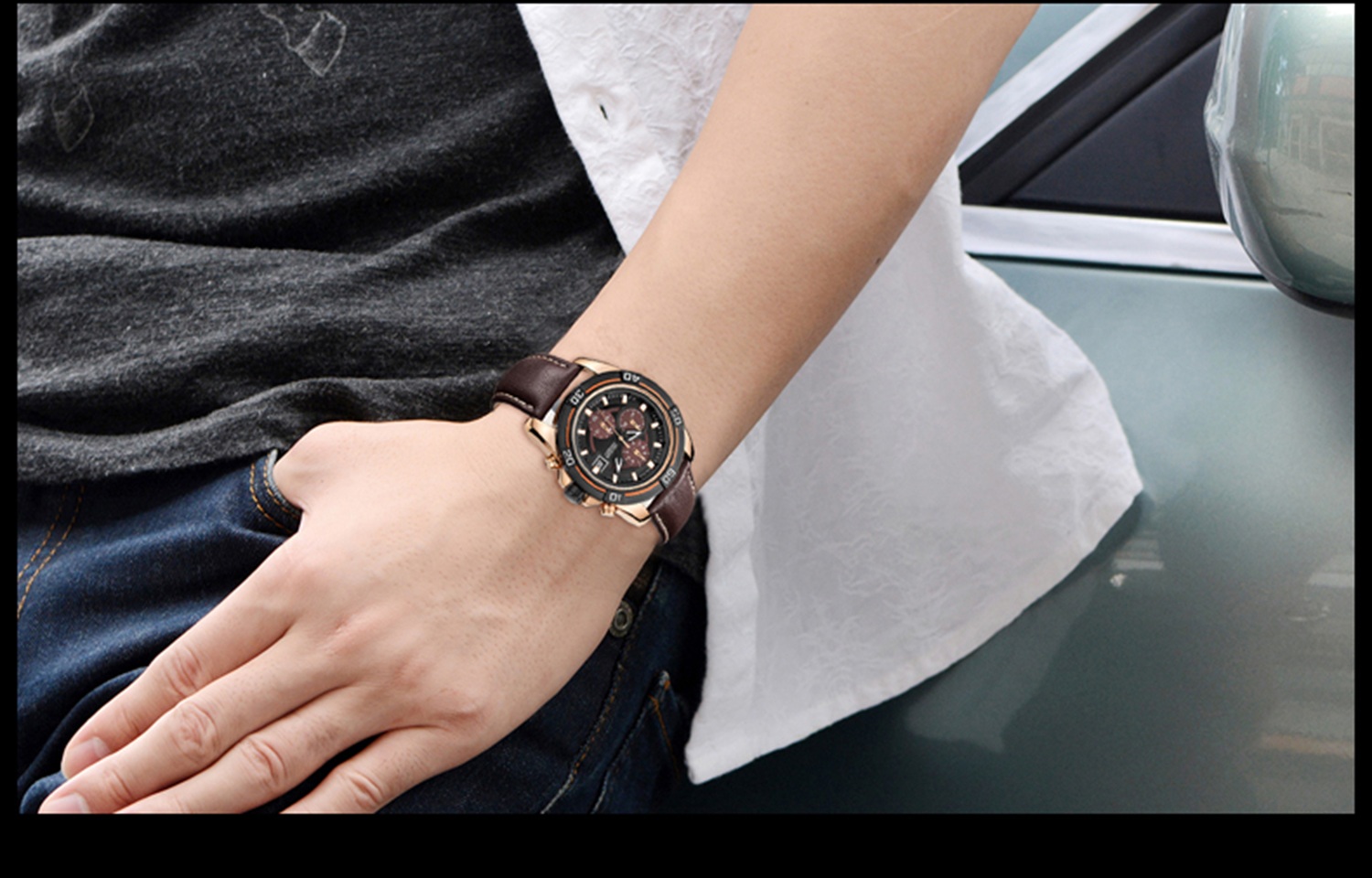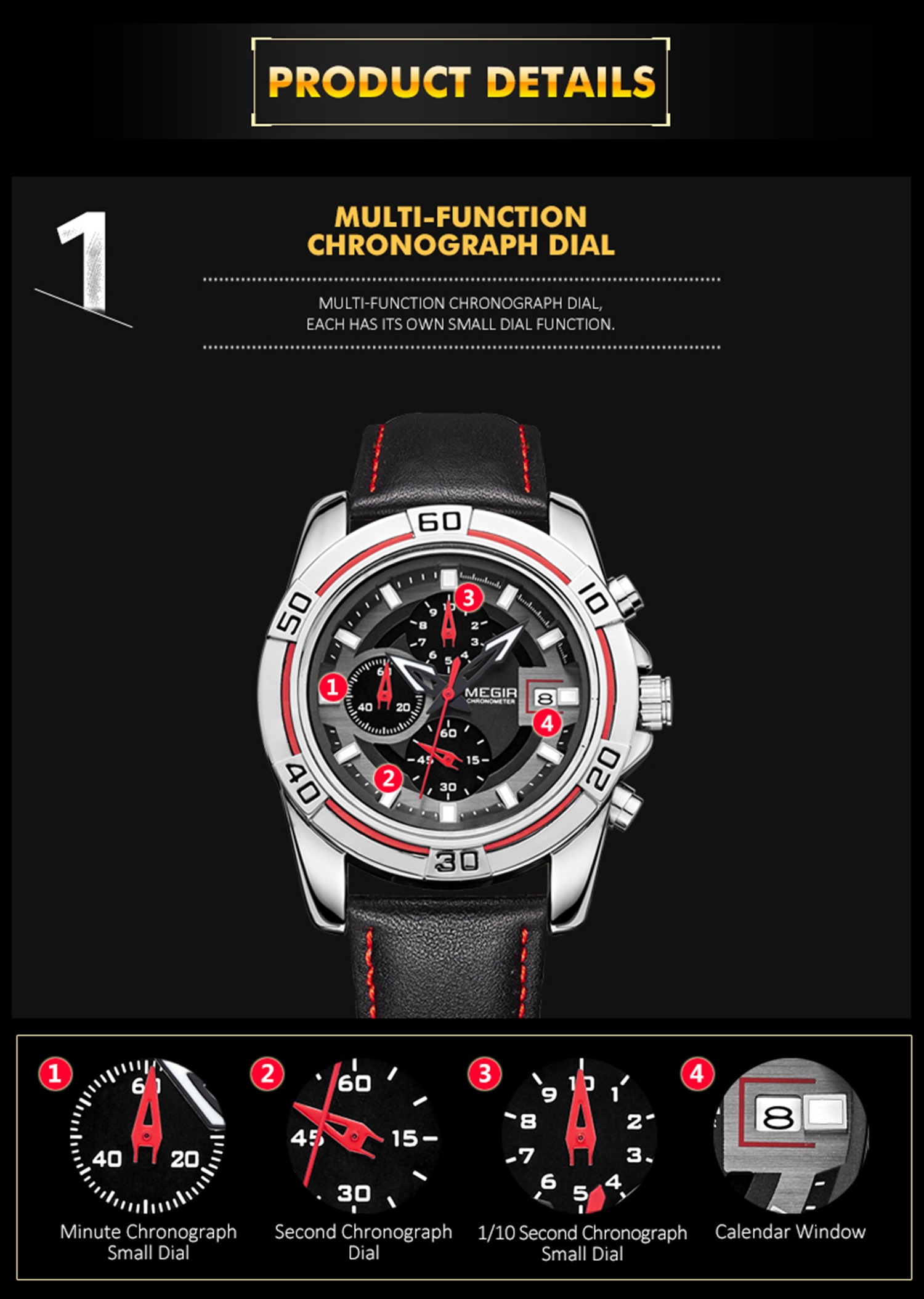 CW-670 Multifunctional Racing Classic Calendar Display Leather Chronograph Luxury Watch Montre